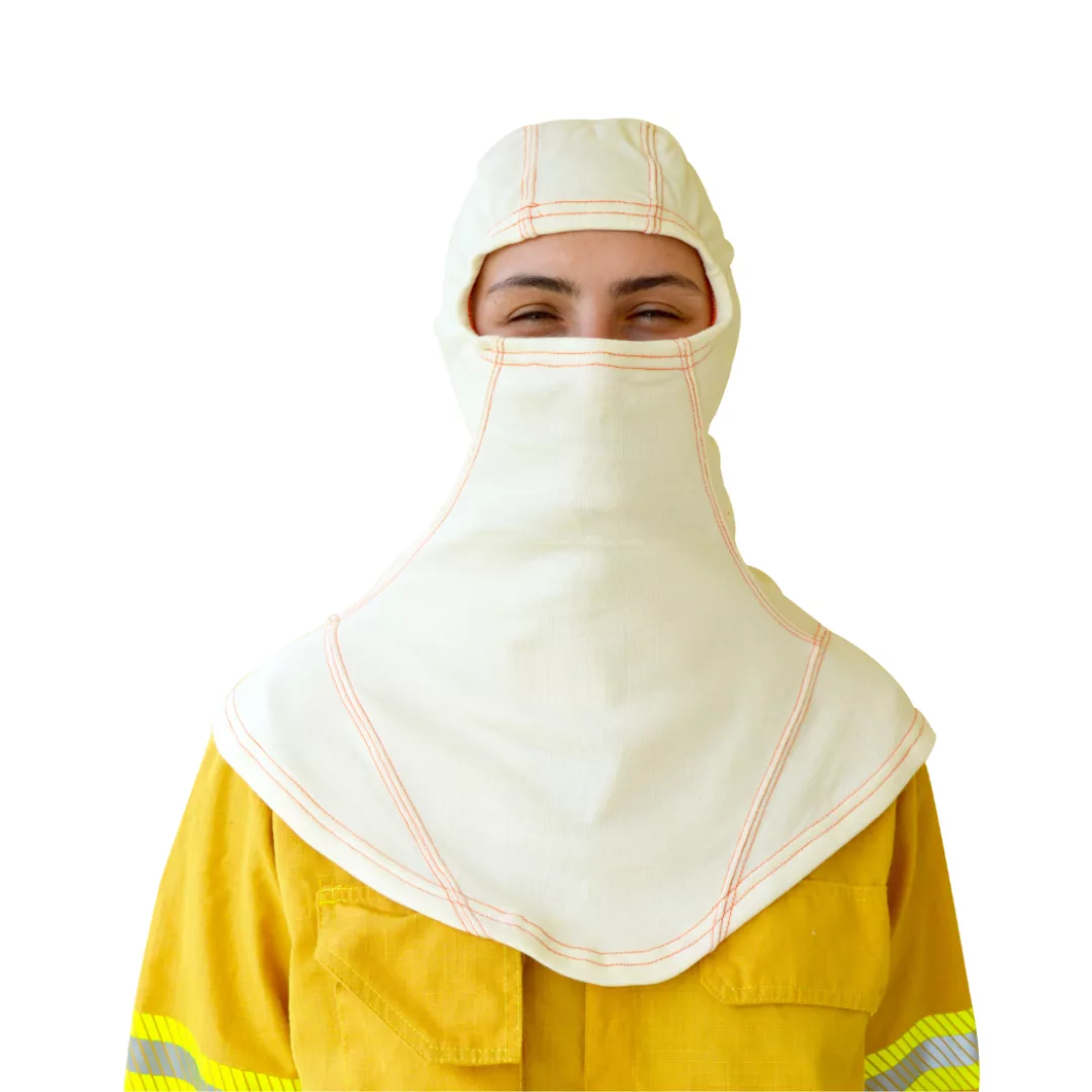 Η πυρίμαχη κουκούλα είναι κατασκευασμένη από ίνες αραμιδίου, προσφέροντας προστασία στο προσωπικό από εγκαύματα λόγω ακραίας θερμότητας, έκθεσης σε φλόγες ή πυρακτωμένα σωματίδια.
