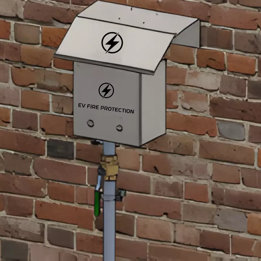 EV FirePro is a targeted suppression system for electric vehicles, designed for rapid activation and containment. It is engineered to integrate into existing water‑based parking fire suppression systems, or to operate as an additional fire protection system in spaces such as residential and commercial parking areas.
