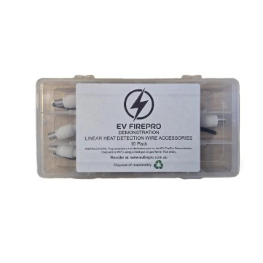 These disposable Linear Heat Wire sticks come in packs of 10 and are designed to be plugged into the port on a Demonstration unit. Heat the end of the LHD wire with a heat gun or gas flame until it activates the EV FirePro. After use, the end of the LHD can be cut and then used again.