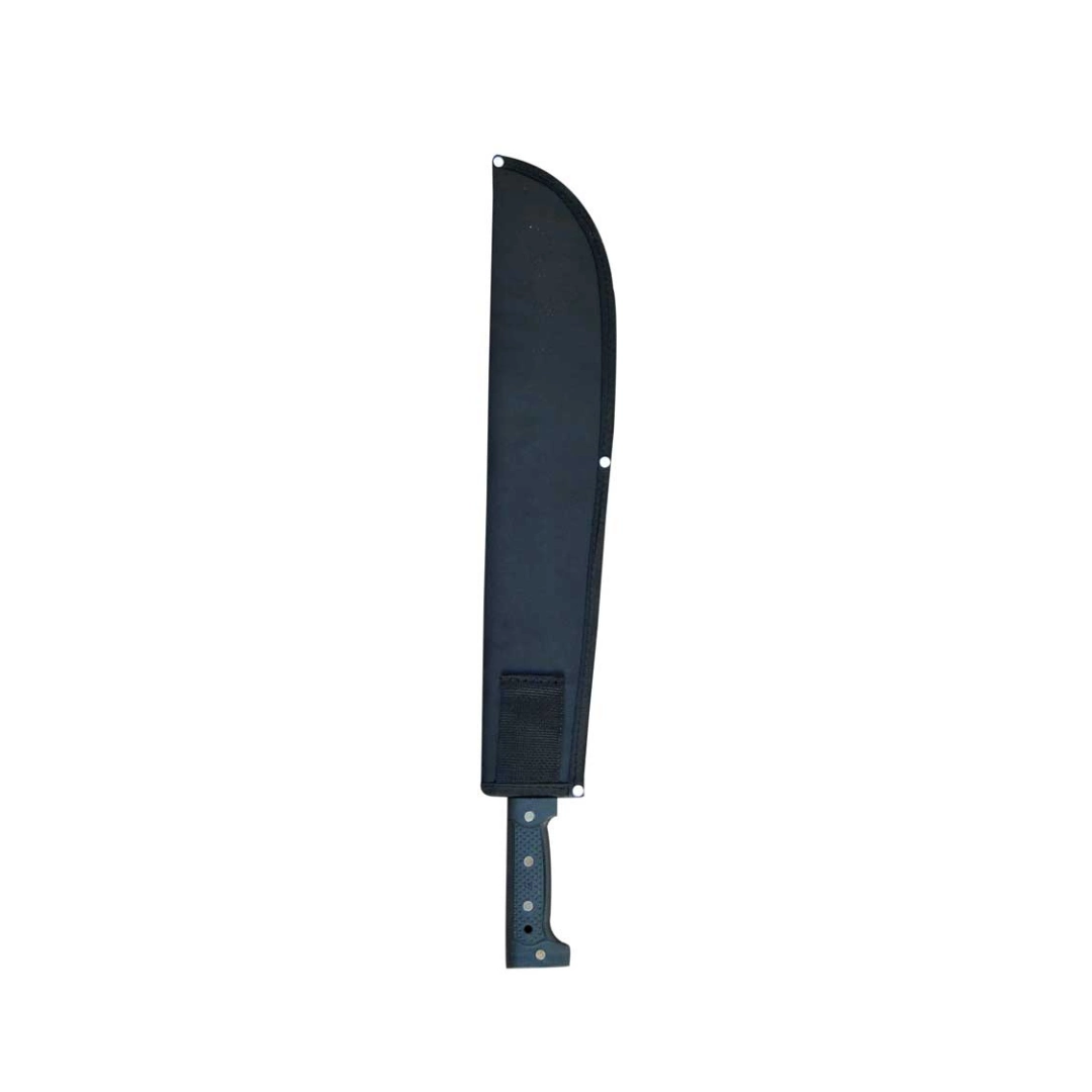 The Machete has a handle that thanks to its shape ensures a firm grip on the tool. It has an ambidextrous textile cover reinforced in the areas of contact with the edges that can be secured to the waist and leg of the user, providing safety in transport and use avoiding accidents or jamming.