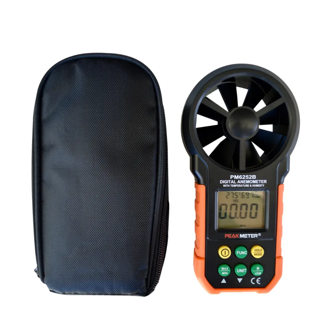 The anemometer can be used to obtain data such as air speed, air flow, temperature, and ambient humidity. It is a professional portable measuring instrument with large LCD display and backlight.