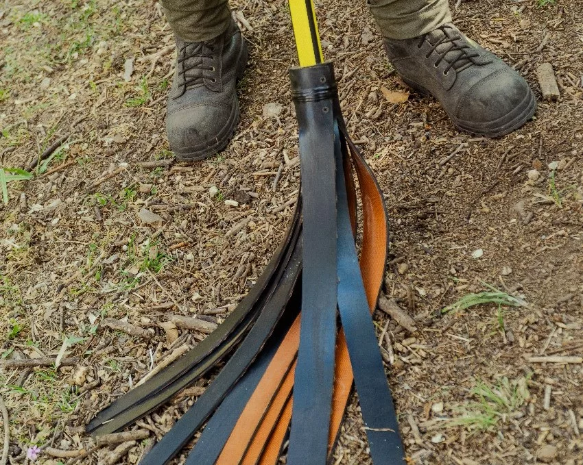 It is a suffocation tool that acts in a similar way as a fire swatter extinguishing and suffocating the flame and eliminating oxygen by hitting the fire line.
