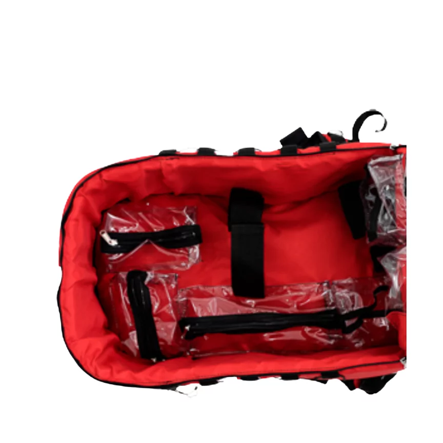 It stands out for its practicality for internal organization and distribution. Its transparent pockets facilitate the classification and identification of elements for respiratory, circulatory, trauma, biosecurity, obstetric and neonatal emergencies.