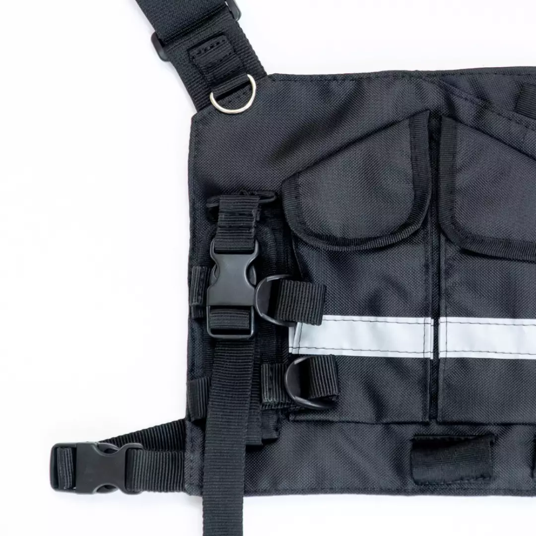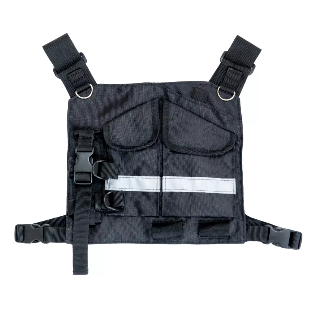 The chest harness features a dual access front pocket and complementary functions such as a pen slot, “D” rings for attaching objects and a palm microphone keeper. Besides, it is useful for holding maps, cell phones, GPS, etc.