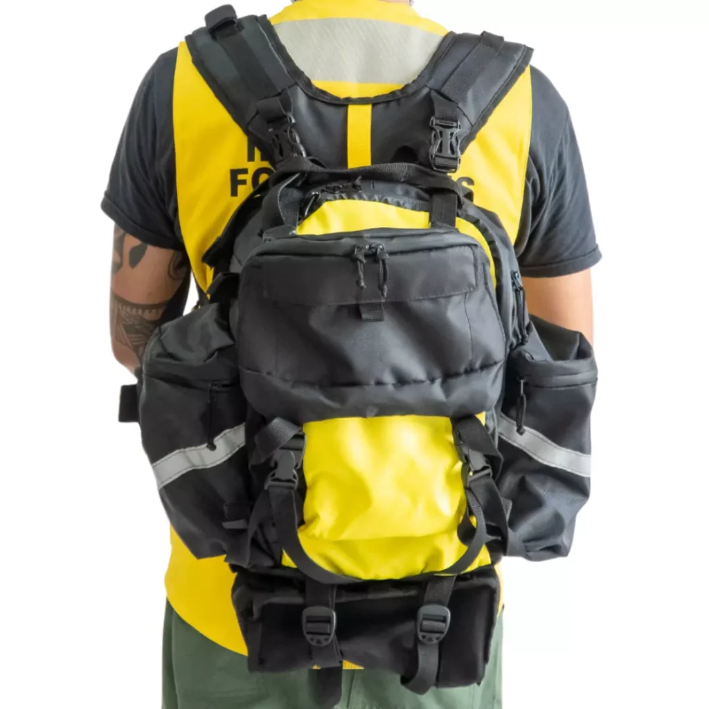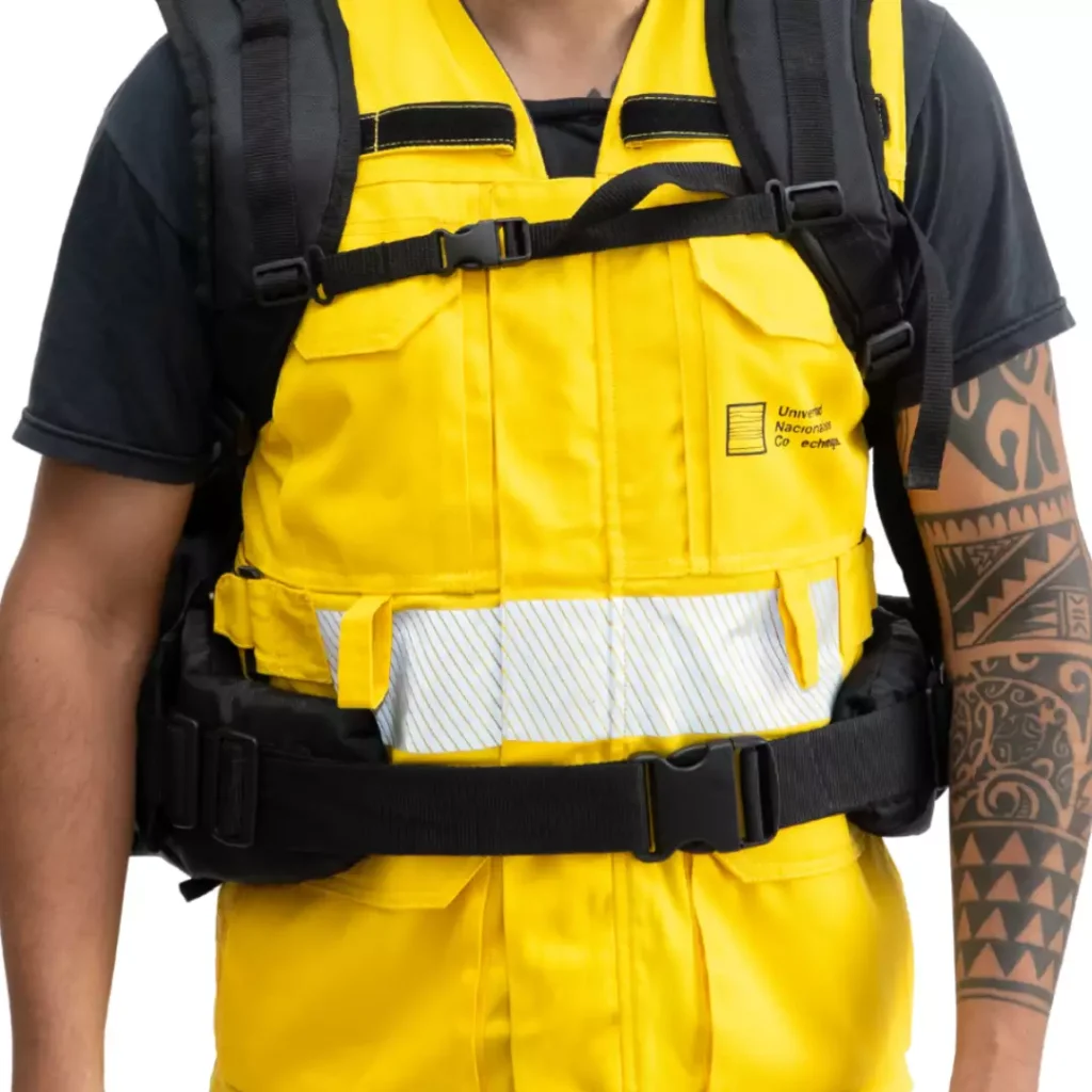 It features an ergonomic harness that adapts to personnel’s needs and adjusts to fit different heights and circumferences, distributing load adequately and allowing for free and agile movement.
