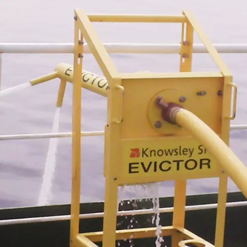 The Knowsley SK ‘Evictor’, Anti-Piracy Water Cannon is an essential part of the multi-layered approach to ship hardening. Utilizing the ships existing fire main or high capacity water supply the Evictor nozzles provide a powerful jet of water and a water mist, to create an effective water shield with tremendous visual presence, inhospitable atmosphere and a physical force capable of deterring the most determined of pirate.
