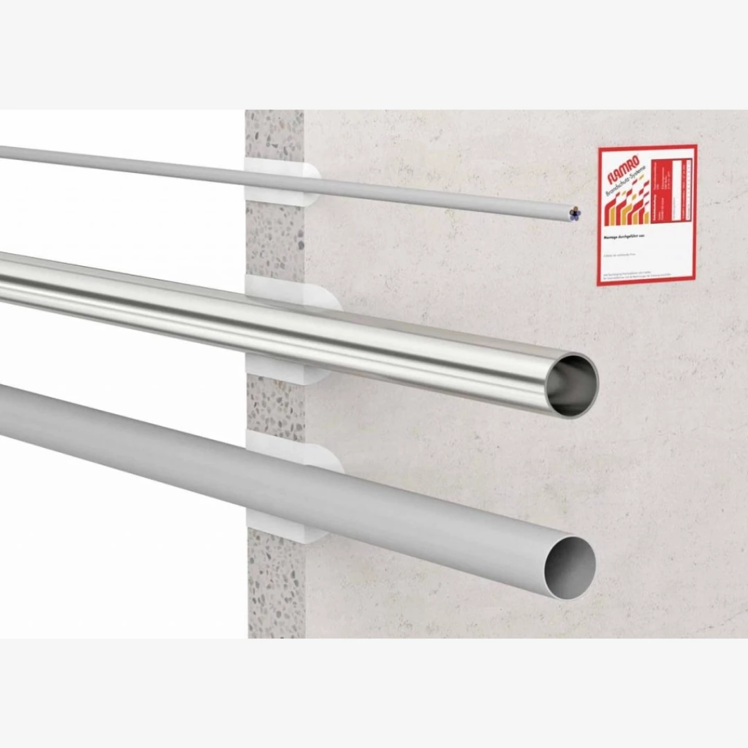 • Permitted for single-line routings in accordance with MLAR sections 4.3.4 and 4.3.3 and for passing lines through fire-resistant walls without the need to adhere to minimum distances between such lines, MLAR section 4.2.