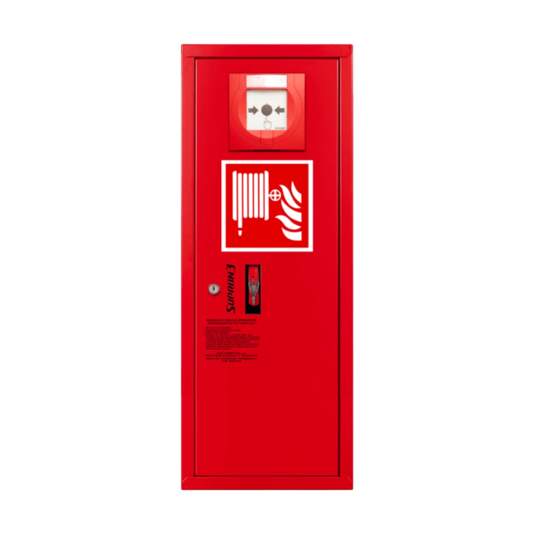 Εσωτερικός κρουνός DN25 τοποθετημένος στον τοίχο με θέση συναγερμού πυρκαγιάς Manual Call Point – διαστάσεις της οπής δημιουργούνται σύμφωνα με τις προδιαγραφές του πελάτη, με ημιάκαμπτο πυροσβεστικό σωλήνα 25 mm. Τοποθετείται στον τοίχο (Z) ή σε εσοχή (W). Οι οπές για τη σύνδεση νερού είναι κενές και δίνουν τη δυνατότητα σύνδεσης σε σωλήνα νερού 1″ ή 2″. Πίεση λειτουργίας από 0,2 έως 1,2 MPa.
