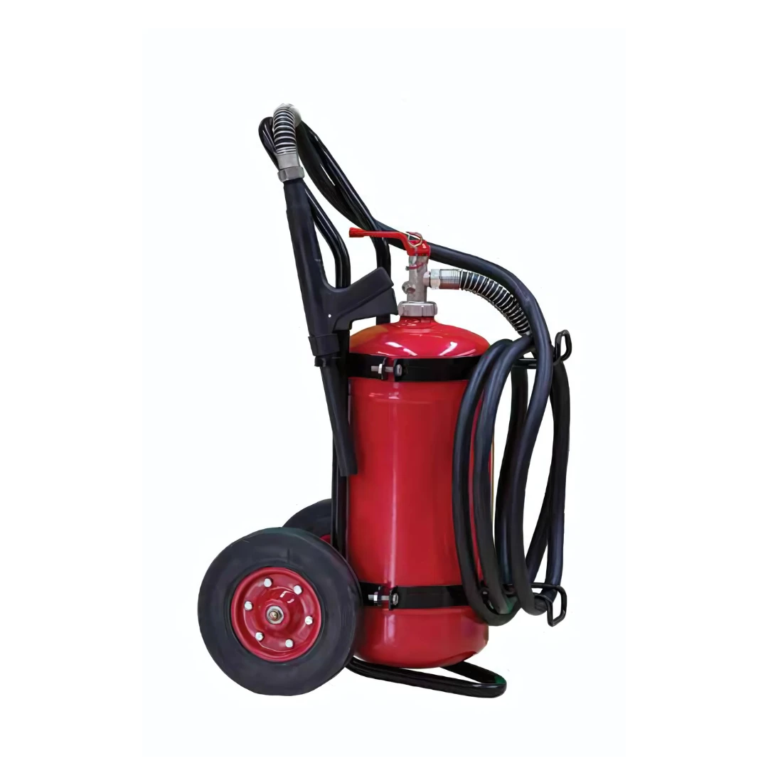 Τροχήλατος πυροσβεστήρας 25kg ξηράς σκόνης ABC40% με συγκολλητό δοχείο, λάστιχο 5m και ενισχυμένους τροχούς.